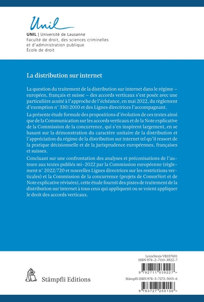 Dans cet ouvrage, Blanche Tinguely aborde la question de la distribution sur internet dans le cadre des accords verticaux en Europe, en France et en Suisse. L'auteure propose des évolutions des textes réglementaires en vigueur, en mettant en avant l'importance de considérer de manière unitaire la distribution en ligne et hors ligne. Elle analyse les risques de déstabilisation des réseaux de distribution traditionnels causés par la libéralisation des ventes en ligne, et formule des recommandations pour y remédier. Afficher moinsAfficher plus