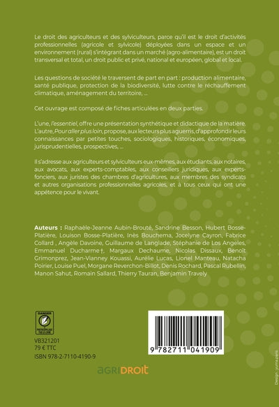 Ce livre présente l'ensemble des règles applicables aux entreprises agricoles et forestières, à l'espace rural, à l'environnement, et aux marchés agricoles et sylvicoles. Il s'adresse aux professionnels du secteur ainsi qu'aux étudiants en droit rural, en proposant une approche transversale et complète de la matière. L'ouvrage est structuré en fiches synthétiques et en approfondissements, abordant des aspects sociologiques, historiques, économiques, jurisprudentiels, etc. Afficher moinsAfficher plus