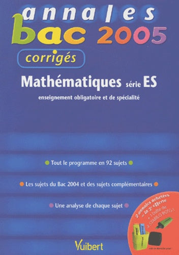 Ce livre propose des corrigés détaillés et structurés pour accompagner les élèves de la série ES dans leur préparation au Bac de mathématiques. Les sujets sont classés par thème et niveau de difficulté, avec des conseils pratiques et un formulaire pour s'entraîner dans les conditions de l'examen. Les corrigés sont accompagnés de barèmes pour évaluer sa progression. Afficher moinsAfficher plus