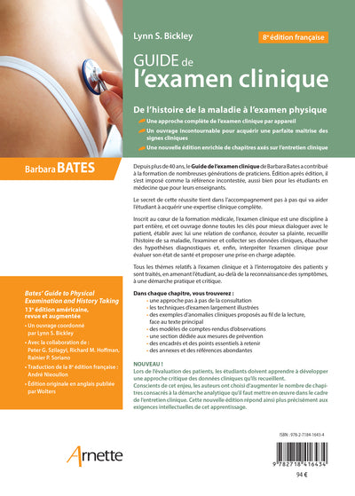 Ce guide de référence, rédigé par Barbara Bates, est un outil indispensable pour les étudiants en médecine et les praticiens. Il propose une approche complète de l'examen clinique, de la relation avec le patient à l'interprétation des données cliniques. Chaque chapitre offre des explications détaillées, des illustrations et des exemples concrets. Cette nouvelle édition met l'accent sur le développement de l'approche analytique des étudiants lors de l'évaluation des patients. Un ouvrage incontournable pour acquérir les compétences nécessaires en médecine clinique. Afficher moinsAfficher plus