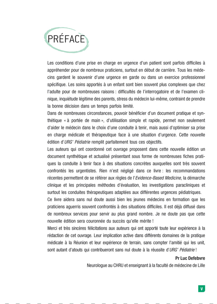 URG’ Pédiatrieest un outil « de terrain » indispensable pour tous les praticiens, en formation ou confirmés, confrontés aux situations urgentes chez l’enfant.