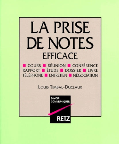 Cet ouvrage de synthèse rassemble en une doctrine cohérente un ensemble de pratiques, parfois originales, et souvent dispensées dans divers livres. Prendre de bonnes notes c'est constituer une trace en vue d'un but. Mais à buts différents, prises de notes différentes : Noter pour garder trace d'un cours ou d'une réunion ; Noter pour mieux assimiler livres et documents ; Noter pour mémoriser en vue de l'action ou de la culture personnelle ; Noter pour écrire une lettre, un compte rendu, un rapport, une étude, une dissertation, un résumé, un commentaire composé, une thèse, un livre... ; Sur quoi faut-il noter : cahier, feuille volante, fiche ou sur le document même ? Combien faut-il noter : beaucoup ou peu ? Quoi noter : l'essentiel ou les détails ? Comment noter à partir d'un cours, d'une conférence, d'une réunion, d'un coup de téléphone ? Comment noter à partir d'un livre, d'un rapport, d'un document ? Comment noter à partir de sa propre mémoire et de sa propre réflexion ? Comment noter enfin pour mieux mémoriser ? Afficher moinsAfficher plus