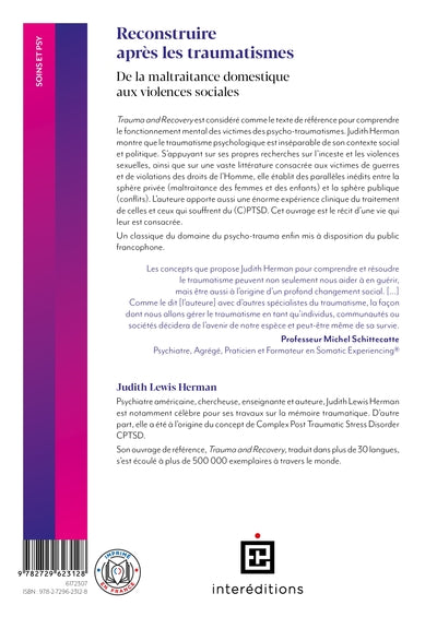 Trauma and Recovery est considéré comme le texte de référence pour comprendre le fonctionnement mental des victimes des psycho-traumatismes. Judith Herman montre que le traumatisme psychologique est inséparable de son contexte social et politique. S'appuyant sur ses propres recherches sur l'inceste et les violences sexuelles, ainsi que sur une vaste littérature consacrée aux victimes de la guerre de régimes dictatoriaux, elle établit des parallèles inédits entre la sphère privée (maltraitance des enfants) et la sphère publique (conflits).