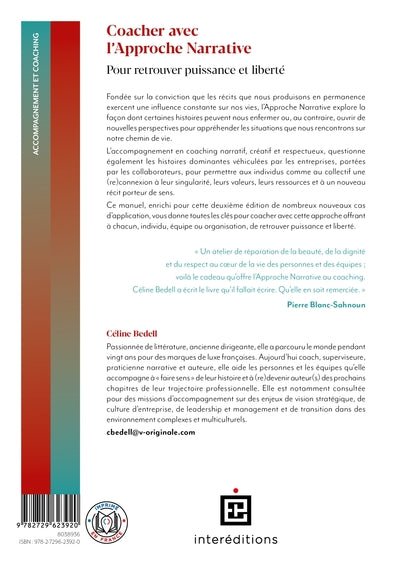PrésentationCe manuel applique l’approche narrative au coaching, individuel et collectif en entreprise, et notamment sur les enjeux de leadership, management, gestion de carrière et performance.,SommairePréface de Pierre Blanc-Sahnoun Unehistoire de rencontresIlétait une fois….Rappel des principes du coaching Principes de base de l’approche narrative Conduire un coaching narratifLe coaching narratif en en entreprisePréambule Les histoires dominantes de l’économie libérale  : les Big 6 (performance, profit de l’actionnaire, compétition, conformité, croissanceéternelle, transformation permanente) Les histoires dominantes des entreprises Les histoires dominantes en coaching individuel Les histoires dominantes en coaching collectif Les histoires dominantes en outplacement Exemples de coachingnarratif avec…Aymeric ou le«  pilote automatique » Laetitia ou«  la camisole » Valérie ou«  patatras » Claire ou«  clarinette » Benoît ou«  l’oursin » Loïc et«  le boulet »  Annexe  : charte des coachs narratifs Afficher moinsAfficher plus
