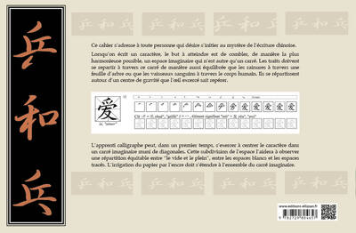 Présentation Ce cahier permet à tout débutant d'apprendre pas à pas l'écriture des mots de base du chinois. Chaque signe y est décomposé permettant d'apprendre ainsi à l'écrire corectement. Il est adapté à la fois pour un autodidacte et à un travail en cours. Il constitue un complément intéressant au manuel "Ping et Pang. Chinois pour débutants". Ce cahier s'adresse à toute personne qui désire s'initier au mystère de l'écriture chinoise. Lorsqu'on écrit un caractère, le but à atteindre est de combler de manière la plus harmonieuse possible un espace imaginaire qui n'est autre qu'un carré. Les traits doivent se repartir à travers ce carré de manière aussi équilibrée que les rainures à travers une feuille d'arbre ou que les vaisseaux sanguins à travers le corps humain. Ils se répartissent autour d'un centre de gravité que l'œil excercé sait repérer. L'apprenti calligraphe peut, dans un premier temps, s'exercer à centrer le caractère dans un carré imaginaire muni de diagonales. Cette subdivision de l'espace l'aidera à observer une répartition équitable entre "le vide et le plein", entre lesespaces blancs et les espaces tracés. L'irrigation du papier par l'encre doit s'étendre à l'ensemble du carré imaginaire. Afficher moinsAfficher plus