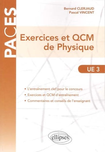 Cet ouvrage propose des exercices et des QCM de physique conformes au programme de la PACES. Destiné aux étudiants préparant ce concours exigeant, il constitue un outil d'entraînement essentiel pour tester ses connaissances et sa capacité de raisonnement. Les questions sont accompagnées de corrigés détaillés pour permettre à l'étudiant de progresser. Ce livre s'inscrit dans la continuité du Cours de physique des mêmes auteurs. Afficher moinsAfficher plus