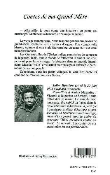 PrésentationNous restions pendus aux lèvres de grand-mère, conteuse aux charmes d'argent. Elle contait telle histoire comme si elle était l'héroïne ou un témoin. Les Comores, îles de l'Océan indien, sont riches de contes et de légendes. Jadis, tout le monde se retrouvait la nuit et une voix s'élevait pour faire voyager l'assistance dans un monde imaginaire... Afficher moinsAfficher plus