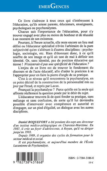 PrésentationL'éducation reste encore un lieu mal défini où l'éducateur spécialisé n'évite l'arbitraire de la pure subjectivité qu'en s'aliénant à d'autres disciplines : psychologie, sociologie, etc. Mais n'existe-t-il pas une spécificité de l'éducation ? L'enjeu de ce livre est de trouver le fondement du discours et de l'acte éducatif, et c'est à ce niveau qu'il rencontre la psychanalyse. L'éducateur trouve là de quoi fonder sa pratique et engager un dialogue avec les autres disciplines. Afficher moinsAfficher plus