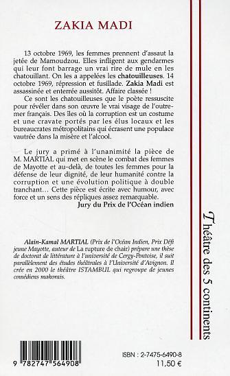 Dans cette pièce de théâtre, Djaïli Amadou Amal s'inspire de faits réels survenus à Mayotte en 1969. Il met en scène le soulèvement de femmes, surnommées les "chatouilleuses", et la répression violente qui s'ensuit. Au cœur du drame, le personnage de Zakia Madi, figure emblématique de la résistance, est assassiné et rapidement oublié. L'auteur dénonce les injustices et la corruption présentes tant au niveau local qu'au sein de l'administration française, offrant une réflexion puissante sur le colonialisme et ses conséquences. Afficher moinsAfficher plus