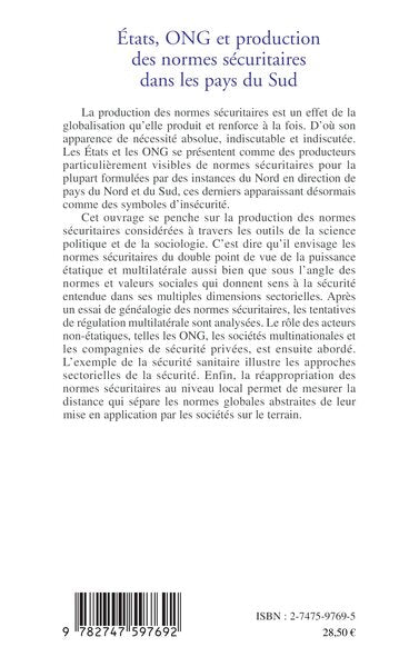 Dans un contexte de globalisation, cet ouvrage analyse la production des normes sécuritaires par les États et les ONG, souvent dictées par les pays du Nord en direction des pays du Sud. Il met en lumière le rôle croissant des pays du Sud en tant que symboles d'insécurité, et examine les enjeux politiques et sociologiques de cette dynamique. Afficher moinsAfficher plus