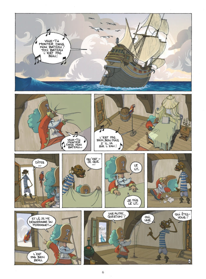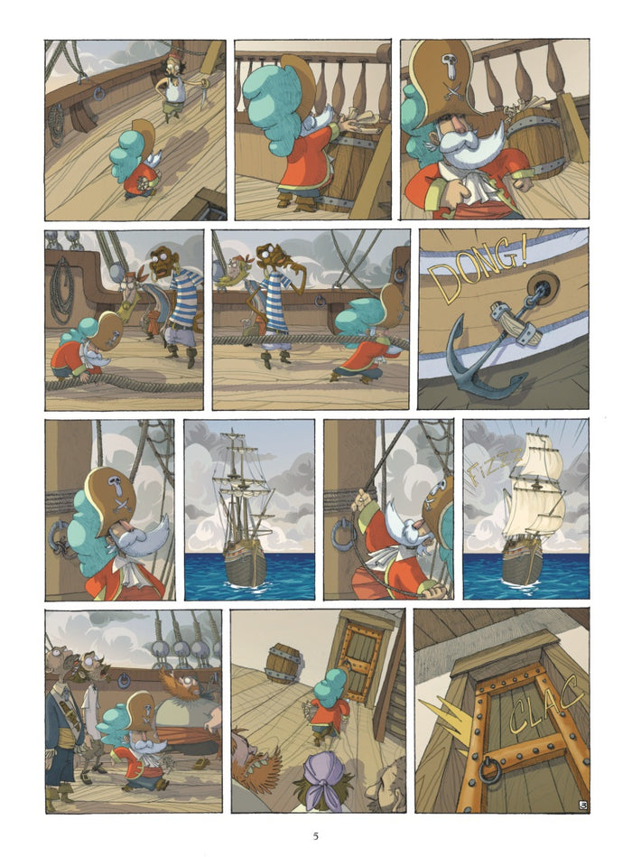 Présentation Le Capitaine Charles est furibard ! Il a perdu au poker son bateau - la Kouklamou -, sonéquipage de pirates, et surtout ses neuf précieuses cartes au trésor. Celui qui a remporté le pactole est un mystérieux marin qui va réussirà se faire accepter par l’équipage, en leur proposant un marché : il devient le capitaine officiel de la Kouklamou enéchange des cartes au trésor ! Faut dire qu’il est bizarre, ce nouveau capitaine : il se ficheéperdument des trésors et passe son tempsà lire, chanter, sculpter et peindre le perroquet ! Quoi qu’il en soit, l’équipage, avecà sa tête le bouillant Romuald, accepte le marché. Les voilà donc partisà la chasse aux trésors, sans savoir que le capitaine Charles està leur poursuite… Retrouvez chez Vents d'Ouest les sept premiers volumes de cetteépopée piratesque hilarante, au ton inspiré de Goscinny et de Gotlib. En exclusivitéà cette nouvelleédition : 8 pages de bonus inédits (ex-libris, crayonnés,études planches...). Afficher moinsAfficher plus
