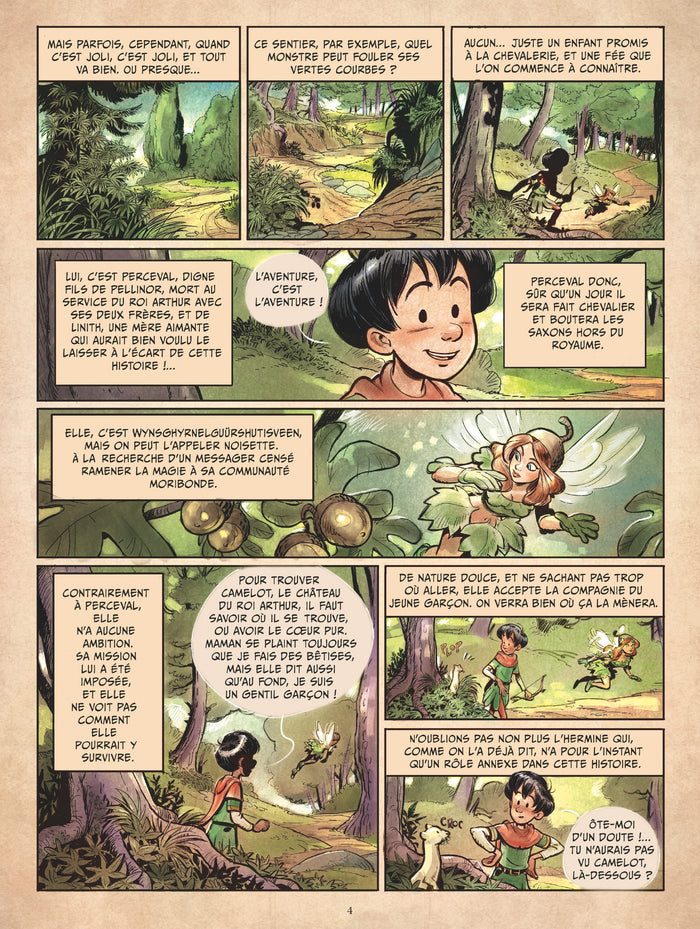 La légende du roi Arthur et les exploits de ses vaillants chevaliers font partie de l'imaginaire collectif. Dans ce tome, Perceval, jeune et courageux, part en mission pour avertir le roi de l'invasion saxonne. Accompagné de la fée Noisette, il devra prouver sa valeur. Cette relecture de la légende met en lumière les origines du chevalier. Les magnifiques illustrations et le scénario captivant plongent le lecteur dans un univers féerique. Afficher moinsAfficher plus