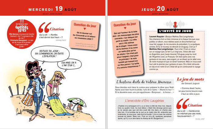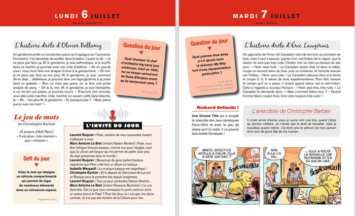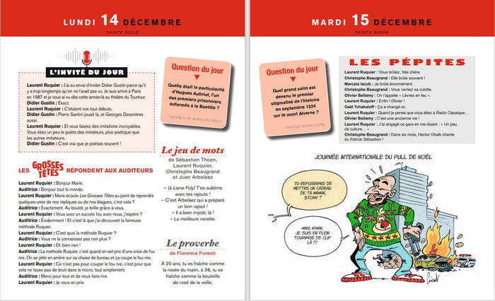 L'Almanach des Grosses Têtes 2026 vous propose de passer l'année en compagnie de l'équipe emblématique de l'émission de radio animée par Laurent Ruquier. Chaque jour, découvrez des histoires drôles, des citations, des jeux comme "Qui a dit ?" et "Les auditeurs face aux Grosses Têtes", ainsi que l'interview de l'invité du jour. Retrouvez Laurent Ruquier et ses acolytes, tels que Jeanfi Janssens, Arielle Dombasle, Paul El Kharrat, Isabelle Mergault, Adil Rami, Stomy Bugsy, Az, Liane Foly et d'autres, pour des moments de rire et de bonne humeur. Afficher moinsAfficher plus