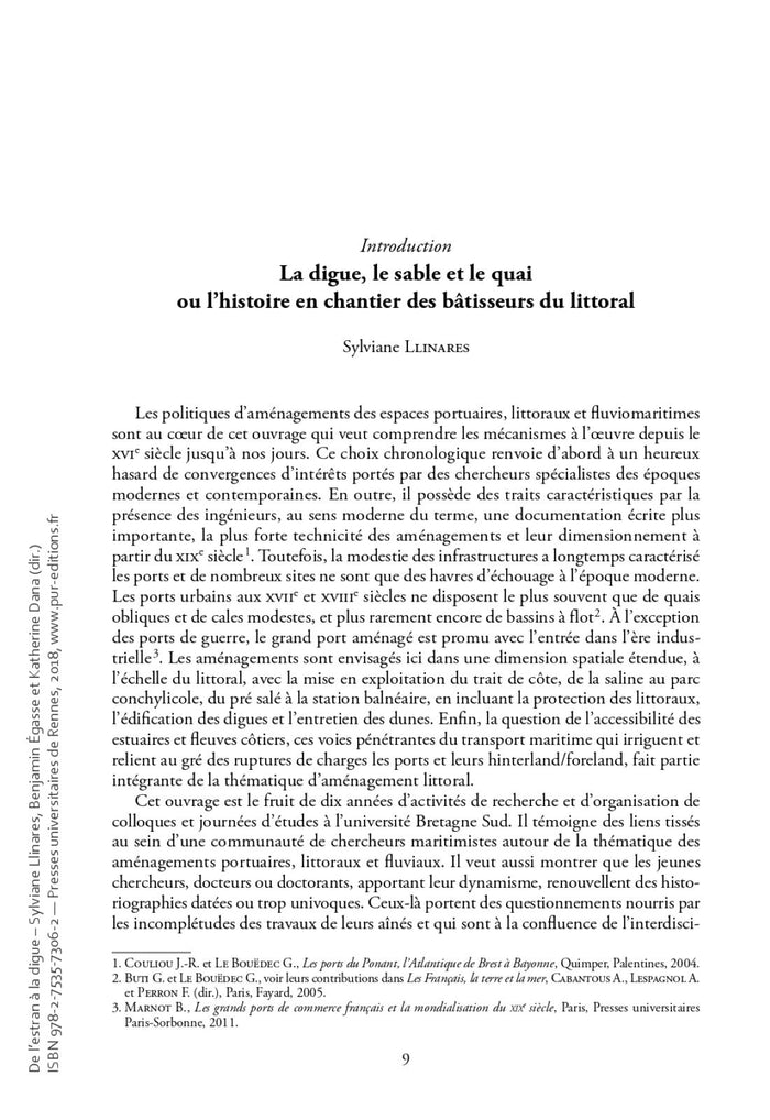 L'ouvrage de Sylviane Llinares retrace l'histoire des aménagements des espaces portuaires, littoraux et fluviomaritimes en France, du XVIe au XXe siècle. L'auteure analyse les divers types d'infrastructures construites, des quais aux phares, en passant par les digues et les citadelles, ainsi que les enjeux économiques, techniques et environnementaux associés. Elle met en lumière le rôle des acteurs locaux, des ingénieurs et des entrepreneurs dans la transformation des paysages côtiers. Ce livre, fruit d'une recherche universitaire, s'appuie sur de nombreuses sources et cartes pour offrir une vision complète de l'évolution des littoraux français. Afficher moinsAfficher plus