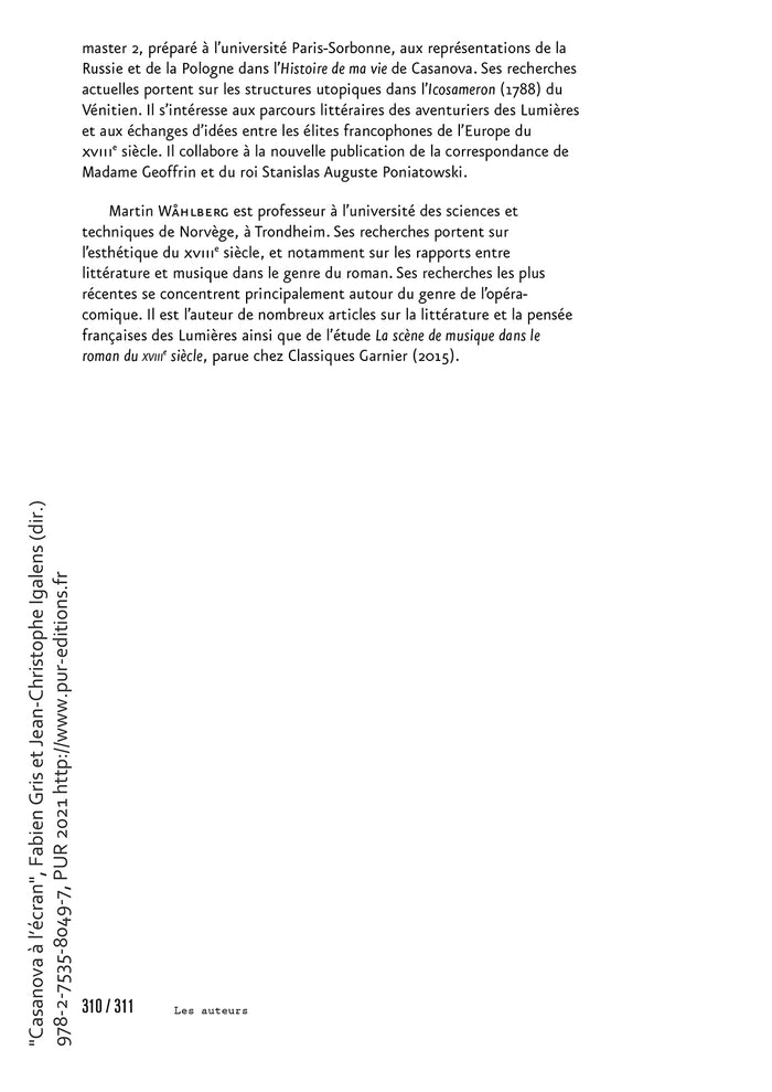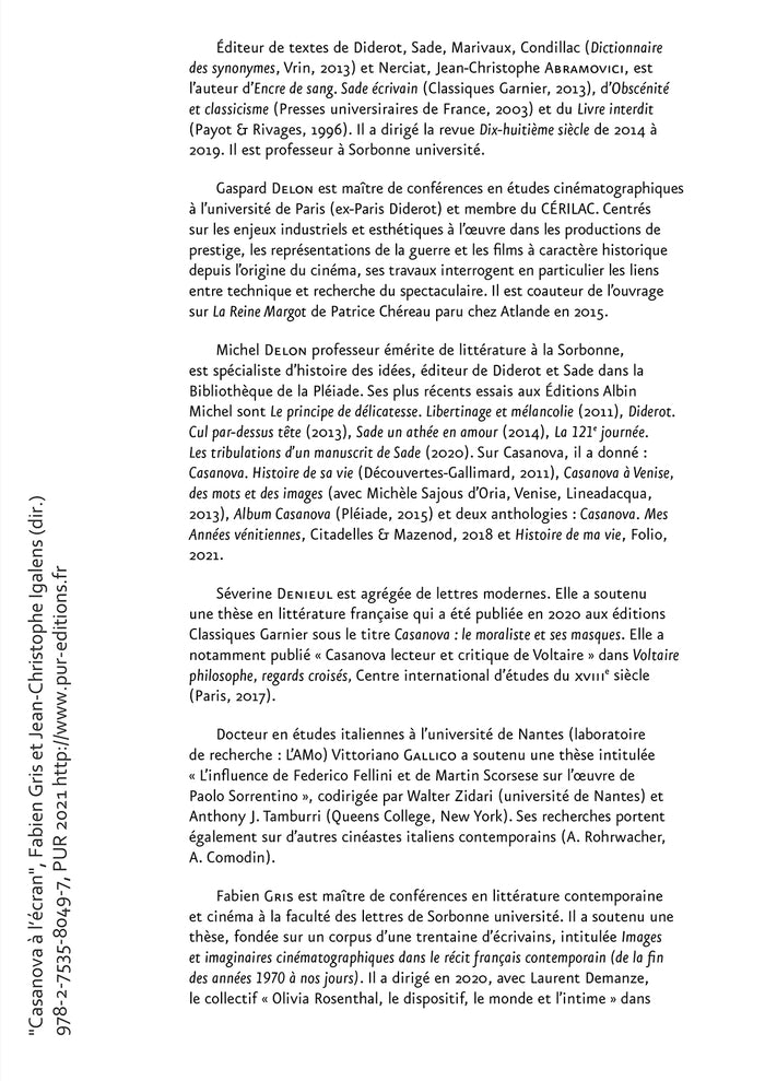 Casanova, personnage fascinant de l'histoire, a été maintes fois adapté au cinéma et à la télévision. De différentes visions de l'homme séducteur à l'écrivain talentueux, cet ouvrage explore les représentations de Casanova à l'écran. De la version hongroise d'Alfréd Deésy au film récent de Benoît Jacquot, en passant par les adaptations de réalisateurs renommés tels que Comencini et Fellini, l'auteur décrypte les enjeux politiques, culturels et imaginaires de ces œuvres. Il analyse les liens entre l'autobiographie de Casanova et sa mise en scène cinématographique, ainsi que la fascination continue du cinéma pour ce personnage complexe. Afficher moinsAfficher plus