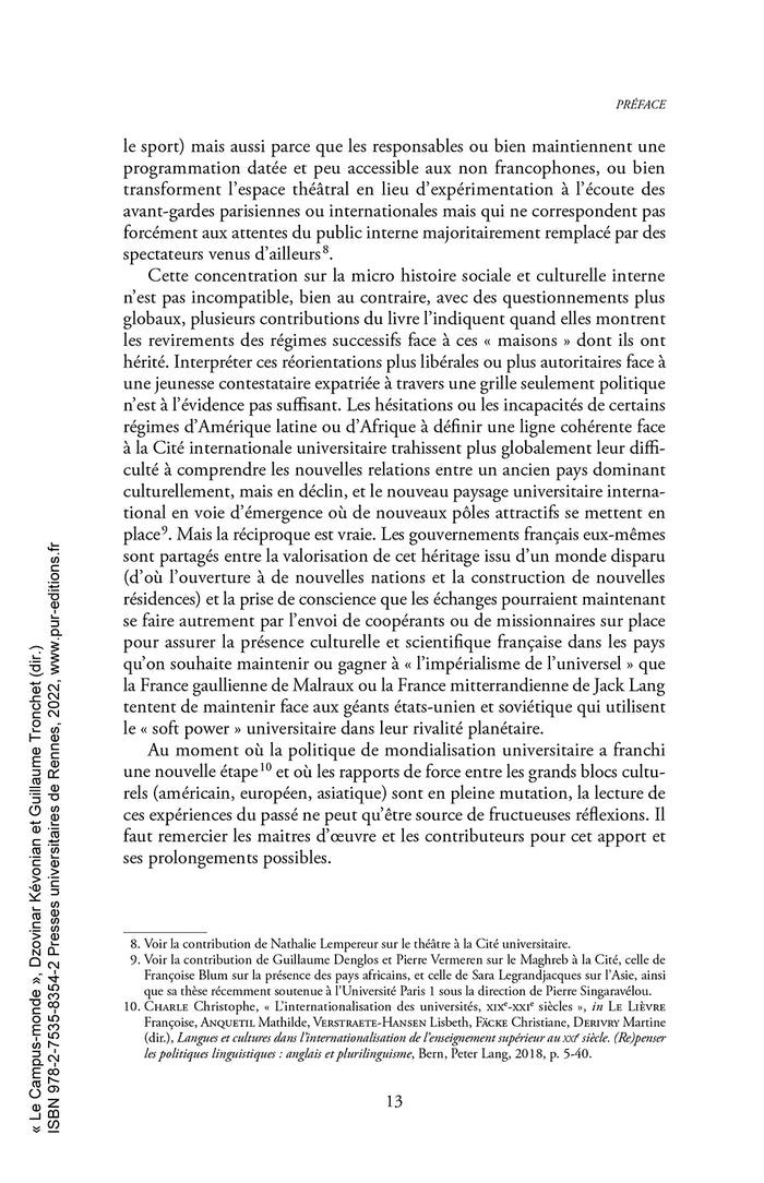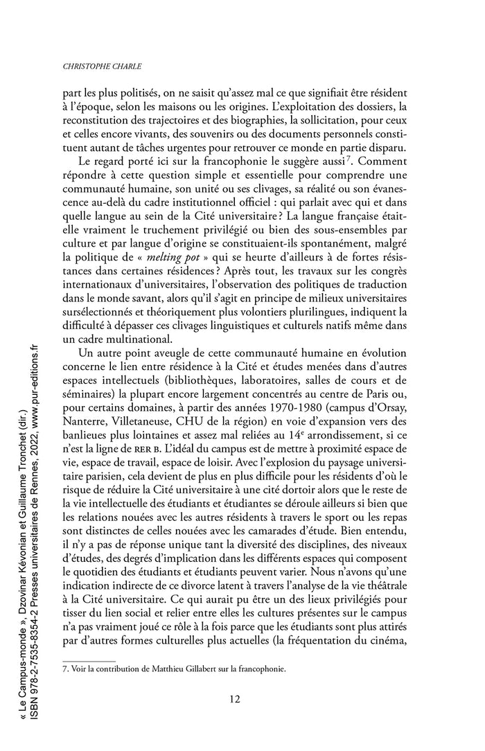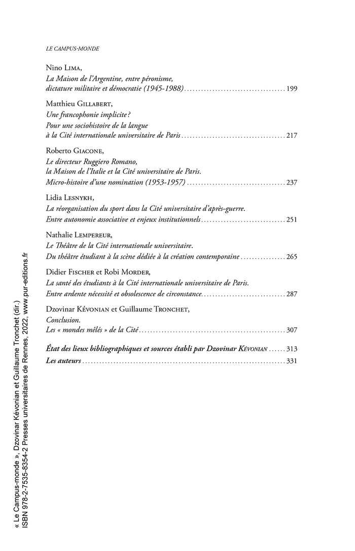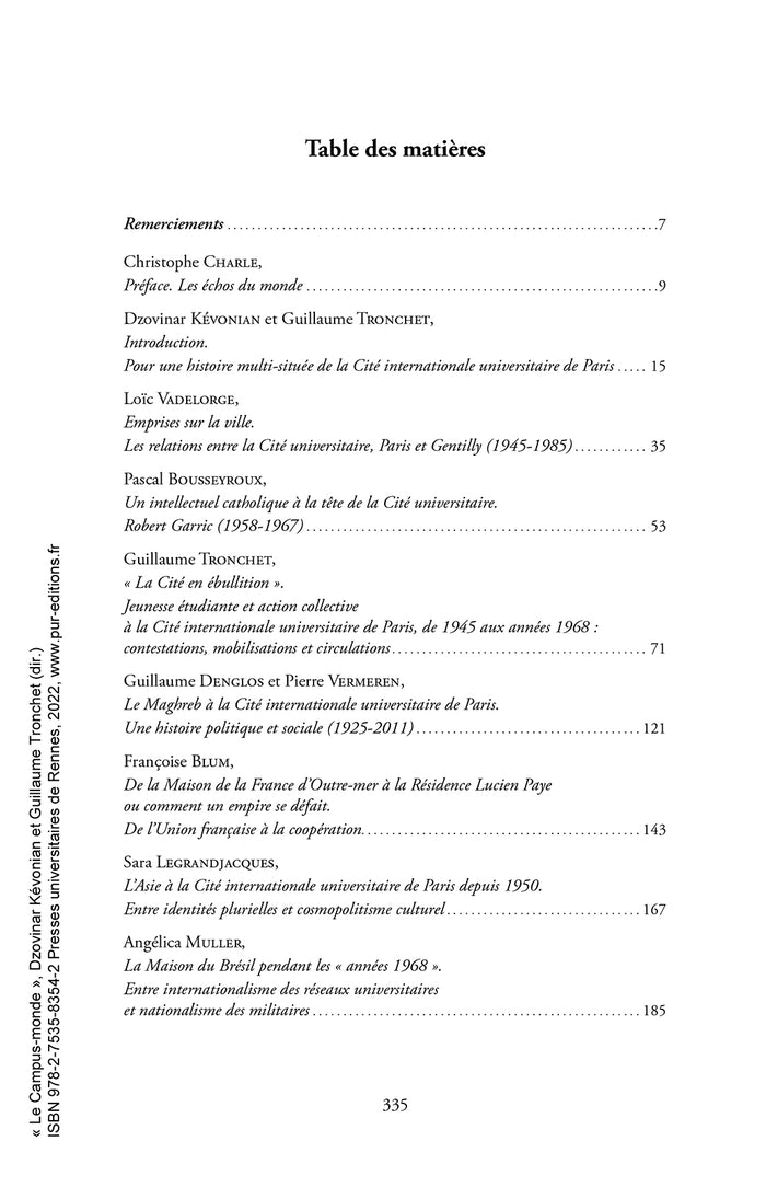 La Cité internationale universitaire de Paris, fondée dans les années 1920, est un lieu unique en son genre. Cet ouvrage collectif retrace son histoire durant la seconde moitié du XXe siècle, marquée par la décolonisation, la guerre froide et les mouvements étudiants de 1968. Les auteurs explorent les relations complexes entre la France et ses anciennes colonies, ainsi qu'avec les dictatures militaires d'Europe et d'Amérique du Sud. En analysant la Cité internationale universitaire comme un microcosme de la mondialisation, ce livre offre une perspective inédite sur les enjeux de l'internationalisme universitaire. Afficher moinsAfficher plus