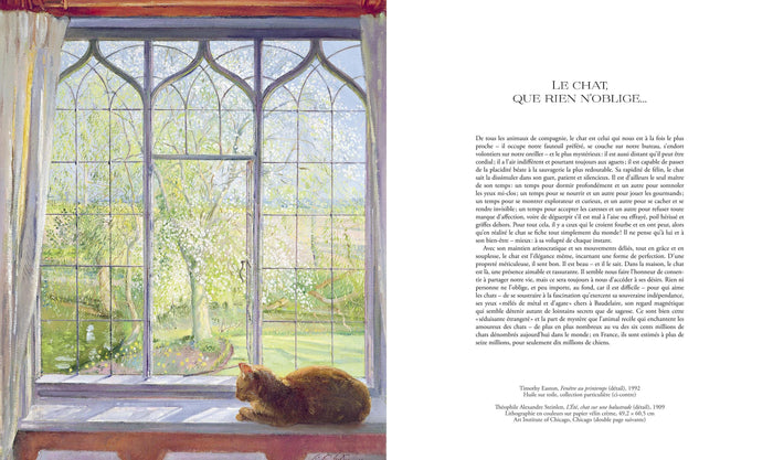 PrésentationDivinisé ou diabolisé, sauvage ou domestique, craint ou adulé, le chat a depuis des siècles fasciné les peintres. De l’Antiquité jusqu’à nos jours, il a occupé une place majeure dans l’histoire de l’art, en suivant l’évolution des styles et des moeurs. Vénéré dans l’Égypte antique, assimiléà Satan età la sorcellerie au MoyenÂge, il va connaître un lent processus de réhabilitationà la Renaissance. Réintégrant peuà peu le coeur du foyer, le chat devient ainsi un motif pictural récurrent, s’immisçant dans les scènes de genre et les natures mortes, accompagnant de sa présence affectueuse et espiègle les portraits de jeunes filles ou d’enfants. Fascinés par sa beauté et sa force d’expression, les artistes vont au fil du temps le considérer comme un sujetà part entière, comme le miroir de leursémotions et le reflet de leur vision du monde. De Paul Véronèseà Jean-Baptiste Siméon Chardin, de Gustave Courbetà Auguste Renoir, de Théophile Alexandre Steinlenà Pierre Bonnard, sans oublier Berthe Morisot, Henri Matisse et Franz Marc, cet ouvrage, illustré d’une centaine d’oeuvres et enrichi de célèbres poèmes, témoigne de la virtuosité et du sens de l’observation inégalés de peintres qui sont parvenusà immortaliser la présence majestueuse de cet animal aussi familier qu’énigmatique. Caroline Larroche  est historienne de l’art etéditrice. Elle a dirigé de nombreuses publications sur l’art, dont Bestiaire japonais  (À Propos, 2021), et est l’auteure de plusieurs livres sur les estampes japonaises, dont Ukiyo-e, images du monde flottant  (Courtes et Longues, 2007), Hokusai, la beauté de la nature  (Géo Art, 2024) etLe thé dans l'estampe japonaise, (Éditions Hazan, 2025). Afficher moinsAfficher plus