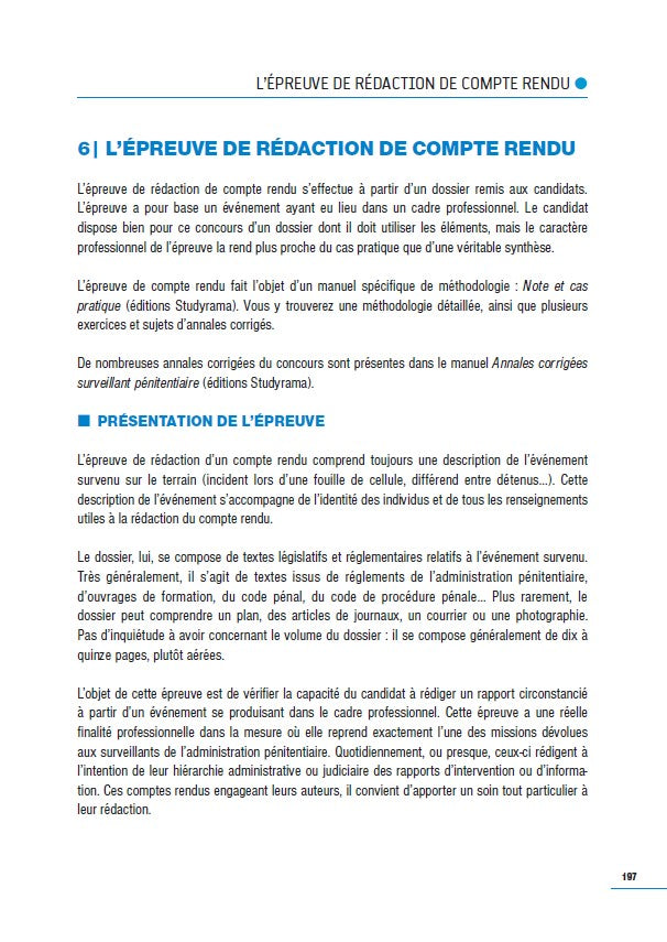 PrésentationCe livre s'adresse aux candidats préparant le concours de surveillant pénitentiaire, accessible au niveau brevet (catégorie C). Outre une présentation détaillée du métier et de l'administration pénitentiaire, ce guide tout-en-un permet de préparer : LES ÉPREUVES D’ADMISSIBILITÉ • QCM • Tests de logique • Compte rendu professionnel LES ÉPREUVES D'ADMISSION • Épreuves sportives • Entretien avec le jury Des conseils méthodologiques, des exercices et des sujets d'annales corrigés récents sont proposés afin de vous familiariser avec les épreuves du concours. ,En brefCe livre s'adresse aux candidats préparant le concours de surveillant pénitentiaire, accessible au niveau brevet (catégorie C). Afficher moinsAfficher plus
