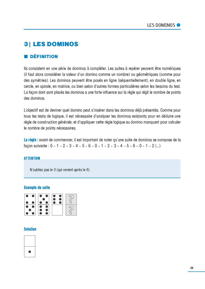 En bref Cet ouvrage s’adresse aux candidats préparant les concours administratifs de catégorie C comprenant une épreuve de tests psychotechniques. ,Sommaire INTRODUCTION 11 Informations pratiques 11 Description générale de l’épreuve 11 Intérêt général de l’épreuve 12 PARTIE I - Savoir-faire 13 1| Conseils pour l’épreuve 15 2| Stratégie de réussite 16 PARTIE II - Tests de raisonnement logique 19 1| Ce qu’il faut savoir 21 2| Les suites logiques 22 Définition 22 S’entraîner 23 Correction 24 3| Les dominos 25 Définition 25 S’entraîner 30 Correction 36 4| Les cartes à jouer 40 Définition 40 S’entraîner 45 Correction 51 5| Les carrés magiques (ou mastermind®) 54 Définition 54 S’entraîner 55 Correction 59 6| Les séries de matrices 61 Définition 61 S’entraîner 62 Correction 69 7| Le sudoku 71 Définition 71 S’entraîner 71 Correction 77 8| Les liens relationnels 82 Définition 82 S’entraîner 83 Correction 85 9| Les logigraphes 88 Définition 88 S’entraîner 90 Correction 101 PARTIE III - Tests d’attention 107 1| Ce qu’il faut savoir 109 2| Les comparaisons 110 Définition 110 S’entraîner 110 Correction 114 3| Le codage 115 Définition 115 S’entraîner 115 Correction 122 4| Les tableaux de données 124 Définition 124 S’entraîner 125 Correction 132 5| Le repérage 133 Définition 133 S’entraîner 133 Correction 139 6| La mémoire 140 Définition 140 S’entraîner 141 Correction 144 PARTIE IV - Tests d’organisation 145 1| Ce qu’il faut savoir 147 2| Les logigrammes 148 Définition 148 S’entraîner 151 Correction 155 3| Les classements 156 Définition 156 S’entraîner 157 Correction 159 4| Les cases à noircir 159 Définition 159 S’entraîner 160 Correction 163 5| Les plannings 165 Définition 165 S’entraîner 165 Correction 168 6| L’organigramme 169 Définition 169 S’entraîner 170 Correction 172 PARTIE V - L’aptitude verbale 175 1| Ce qu’il faut savoir 177 2| Les synonymes 179 Définition 179 S’entraîner 179 Correction 184 3| Les antonymes 185 Définition 185 S’entraîner 185 Correction 189 4| Les homonymes 191 Définition 191 S’entraîner 191 Correction 194 5| Les anagrammes 195 Définition 195 S’entraîner 195 Correction 197 6| Les paronymes 198 Définition 198 S’entraîner 198 Correction 201 7| Les palindromes 202 Définition 202 S’entraîner 202 8| Les analogies verbales 204 Définition 204 S’entraîner 204 Correction 206 9| Lettres manquantes et assemblage de mots 207 Définition 207 S’entraîner 208 Correction 210 10| Les dictons et expressions 211 Définition 211 S’entraîner 211 Correction 214 PARTIE VI - L’aptitude numérique 217 1| Ce qu’il faut savoir 219 2| Les opérations et le calcul mental 221 Définition 221 S’entraîner 222 Correction 224 3| Les unités de mesure 226 Définition 226 S’entraîner 228 Correction 230 4| Les surfaces 232 Définition 232 S’entraîner 233 Correction 235 5| Les pourcentages 236 Définition 236 S’entraîner 237 Correction 240 6| Les puissances 242 Définition 242 S’entraîner 243 Correction 246 7| Les racines carrées 248 Définition 248 S’entraîner 249 Correction 251 8| Les problèmes 252 Définition 252 S’entraîner 252 Correction 256 9| Test de mémoire 260 Ce qu’il faut savoir 260 S’entraîner 261 Correction 265 PARTIE VII - S’entraîner en situation Sujets d’entraînement 267 1| Test 1 d’autoévaluation 269 Logique 269 Attention / observation 270 Organisation 272 Résultats 273 2| Test 2 274 Logique 274 Attention / observation 281 Organisation 285 3| Test 3 288 Logique 288 Attention / observation 292 Organisation 296 4| Correction du test 1 298 Logique 298 Attention / observation 299 Organisation 300 5| Correction du test 2 301 Logique 301 Attention / observation 303 Organisation 304 6| Correction du test 3 305 Logique 305 Attention / observation 306 Organisation 307 ,Présentation Cet ouvrage s’adresse aux candidats préparant les concours administratifs de catégorie C comprenant une épreuve de tests psychotechniques. La réussite de cette épreuve nécessite une préparation soutenue et l’acquisition d’une méthode solide pour parvenir à se montrer à la fois rapide et efficace. À travers un entraînement intensif en situation de concours, des conseils méthodologiques et des rappels de cours, ce livre offre tous les outils nécessaires pour apprendre à maîtriser les contraintes propres à l’épreuve : gestion du temps, compréhension des consignes et mobilisation des connaissances. LES DIFFÉRENTS TYPES DE TESTS • Raisonnement logique : cartes à jouer, dominos, suites, carrés magiques… • Attention : codage, tableaux de données, comparaisons, repérage… • Organisation : logigrammes, plannings, cases à noircir… • Aptitude verbale : synonymes, anagrammes, palindromes, analogies… • Aptitude numérique : calcul mental, unités de mesure, surfaces, pourcentages… Afficher moinsAfficher plus