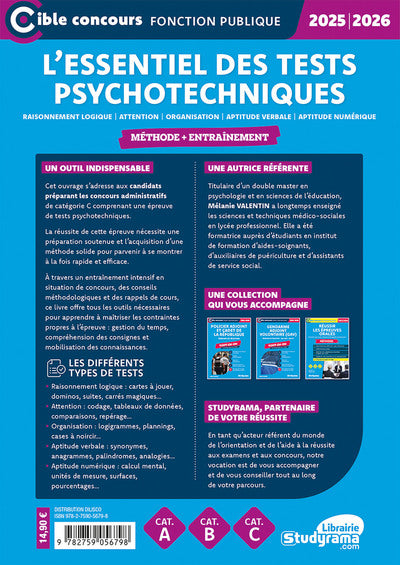 L'essentiel des tests psychotechniques – Méthode + entraînement (Catégories A, B et C – Édition 2025-2026)