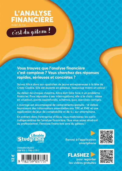 En bref Une approche originale fondée sur le storytelling en suivant étape par étape Alice, une créatrice d'entreprise, pour tout comprendre de l'analyse financière avec des vidéos supports et une application de jeux pour smartphones.  ,Présentation Une approche originale fondée sur le storytelling en suivant étape par étape Alice, une créatrice d'entreprise, pour tout comprendre de l'analyse financière avec des vidéos supports et une application de jeux pour smartphones.  Une méthode originale, simple et efficace fondée sur le storytelling pour comprendre et maîtriser l'analyse financière Au début de chaque chapitre Alice, une jeune créatrice d’entreprise, se pose une question sur l'analyse financière. Dans une première partie, l’auteur répond à Alice sur le ton du storytelling en s’appuyant sur des exemples très pratiques.  La même question est ensuite traitée de façon plus classique. Des schémas et des visuels sont prévus pour aider le lecteur dans son apprentissage. À la fin de chaque chapitre, un quiz et un exercice sont proposés Cette nouvelle édition mise à jour et augmentée est accompagnée de compléments gratuits 14 vidéos fournissant des informations essentielles aux TPE et PME et une application de jeux de comptabilité et de S. I. sur smartphones.  Afficher moinsAfficher plus