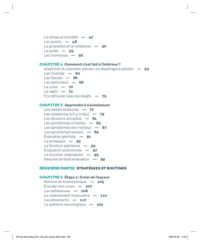Présentation67 % des femmes souffrent de pertes urinaires, d'une descente d'organes ou d'inconforts lors de relations sexuelles. Bonne nouvelle : vous pouvez déjouer les statistiques ! Les problématiques en lien avec le périnée sont tellement communes chez les femmes qu'elles sont banalisées dans notre société. Pourtant, elles jouent de façon significative sur la qualité de vie. Vous a-t-on déjà dit que votre inconfort était normal, qu'il n'y avait rien à faire et qu'il n'y avait point de salut au-delà des exercices de Kegel ? Rien de plus faux ! Mesdames, vous pouvez aller mieux. Ce livre permet d'optimiser le corps des femmes et des mamans pour qu'elles puissent reprendre une vie activeà leur image. Elle vous propose donc de comprendre chaque structure de votre corps et d'apprendre à les travailler pour enfin vous sentir bien. Cet ouvrage, inspiré par 15 ans de pratique en physiothérapie abdominopelvienne et posturale, présenteune approche de la santé pelviennequi s'intéresse au corps dans sa globalité. L'autrice proposedes routines, incluant des séquences d'autotraitement, des étirements, des exercices de renforcement postural et des stratégies neuromotrices. Après cette lecture, vous vous sentirez puissante, en contrôle et, surtout, vous aurez en main les bons outils pour retrouver le confort. Le savoir, c'est le pouvoir ! ,Note biographique Mélanie Claveauest une kinésithérapeute, experte en santé abdominopelvienne.Ayant expérimenté elle-même plusieurs symptômes pelviens récalcitrants au travers de ses quatre enfantements, elle a créé une approche innovante dans le but de se venir en aide et d'améliorer le quotidien des femmes qui vivent une situation similaire. On la trouve sur lesréseaux sociaux et sur son site (laphysiopasgenee.net). Elle collabore également à divers blogues, notamment "Je suis maman" Afficher moinsAfficher plus