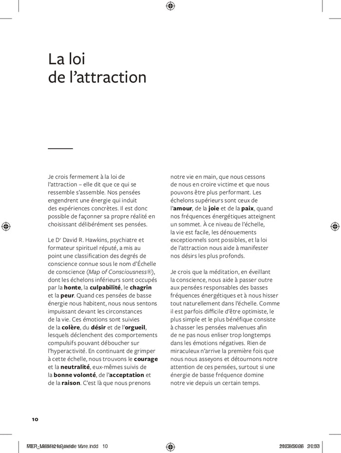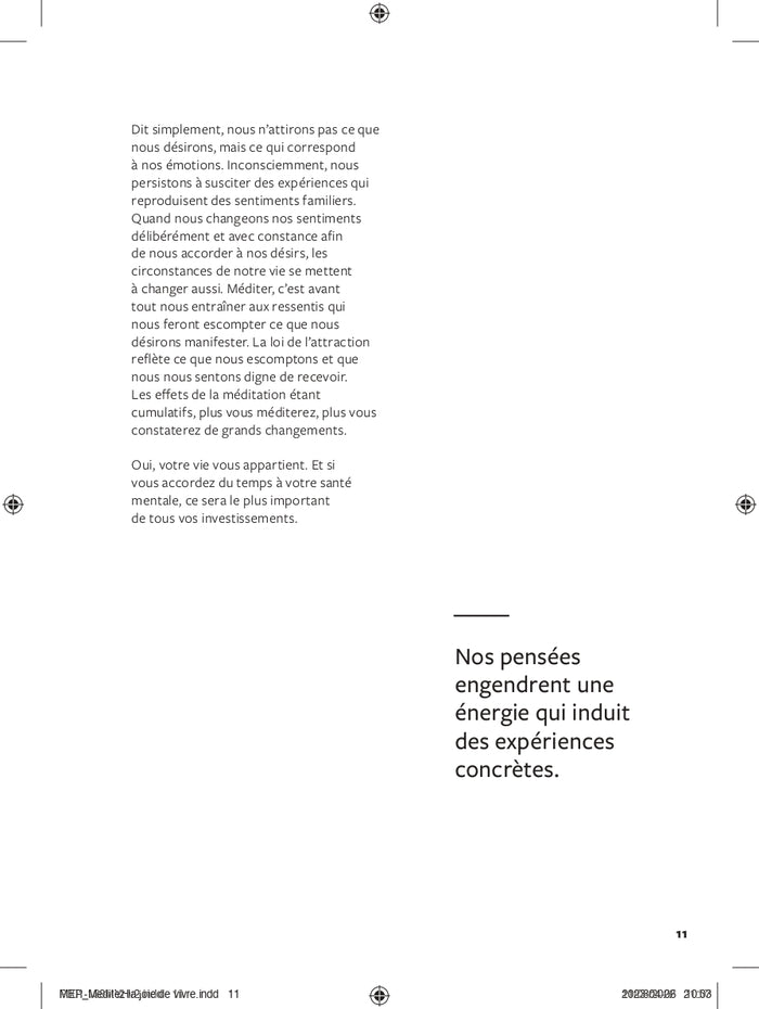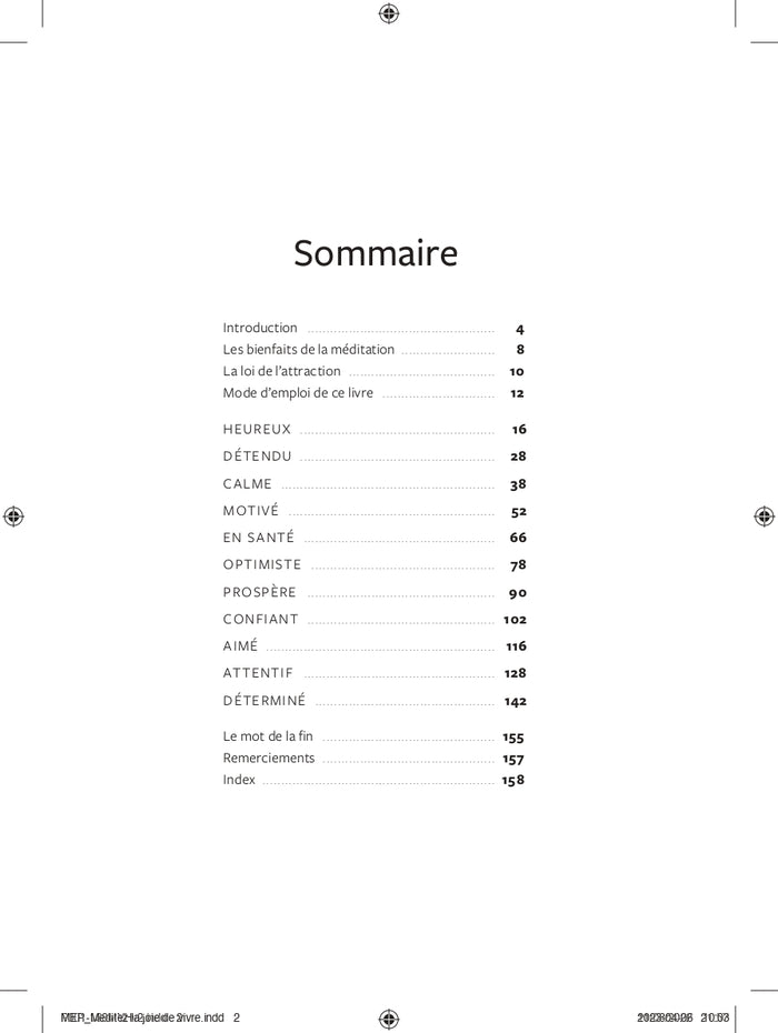 PrésentationApprenez à cibler vos séances de méditation en fonction de l'état d'esprit auquel vous aspirez. Besoin d'un coup de pouce pour vous sentir mieux ? Découvrez les nombreux bienfaits de la méditation pour cultiver votre bien-être et cibler l'humeur à laquelle vous aspirez ! Il est bien connu que la pratique méditative, même de courte durée, contribue à réduire le stress, à contrôler l'anxiété et à améliorer la santé émotionnelle. Dans cet ouvrage, l'autrice et hypnothérapeute agréée Fiona Lamb vous enseigne non seulement comment profiter de ces multiples bienfaits, mais aussi la manière de cibler une séance méditative selon la disposition d'esprit espérée. Elle propose donc des exercices de 5 à 10 minutes, simples et accessibles, regroupés par état d'esprit, qui vous feront découvrir que de tout petits changements peuvent engendrer de grandes transformations. Que vous souhaitiez vous sentir heureux, détendu, calme, motivé, en santé, positif, prospère, confiant, aimé, conscient ou déterminé, ce joli guide pratique et inspirant vous apprendra à tirer parti du pouvoir bienfaisant de la méditation en fonction de la disposition d'esprit à laquelle vous désirez parvenir. La méditation n'est plus hors d'atteinte. Même pas pour vous ! ,Note biographique Fiona Lambest hypnothérapeute agréée, formatrice et experte en méditation à Londres. Elle a traité des milliers de clients et a remporté le prix de l'hypnothérapeute de l'année en 2021 et en 2022 aux Prestige Awards de sa ville. Afficher moinsAfficher plus