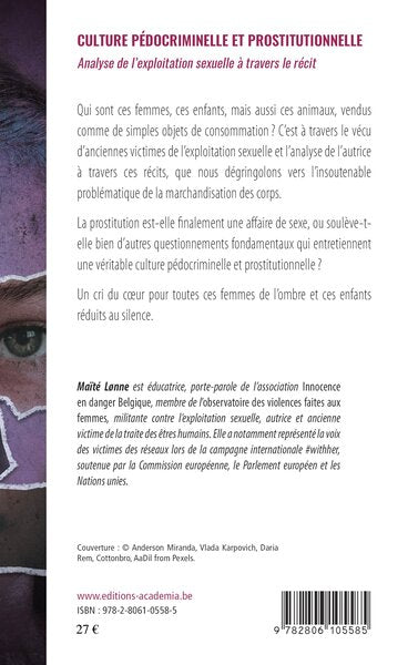 Maïté Lønne, éducatrice et militante contre l'exploitation sexuelle, donne la parole à d'anciennes victimes de l'exploitation sexuelle. À travers leurs récits poignants, elle analyse la marchandisation des corps, soulignant les liens entre la prostitution, la pédocriminalité et une culture de l'exploitation. Un ouvrage engagé qui questionne nos représentations de la sexualité et de la violence. Afficher moinsAfficher plus
