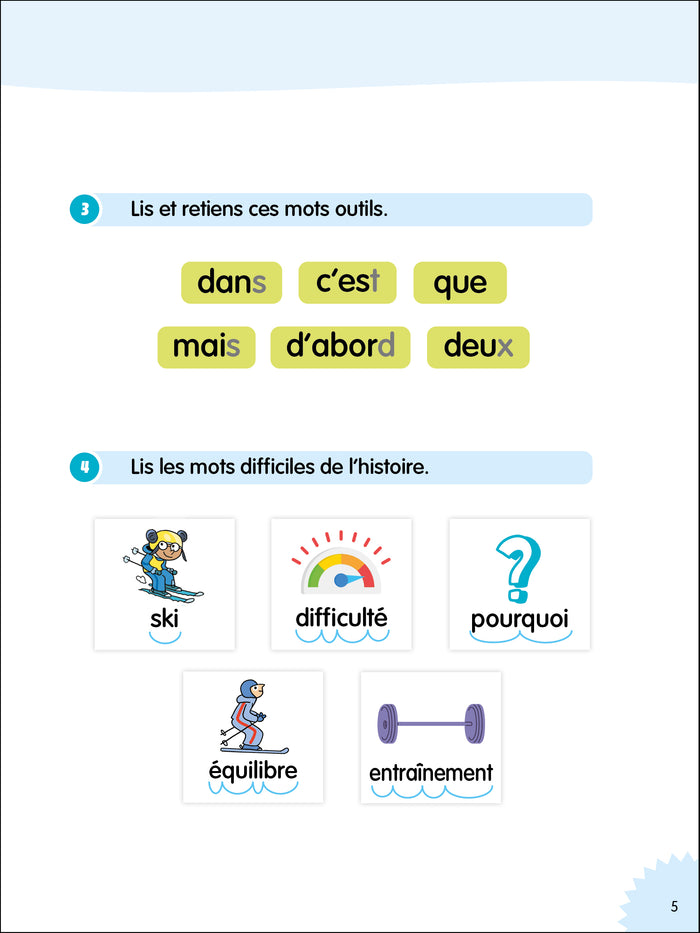 PrésentationLes premières lectures Incollables pour apprendreà lire età se questionner !   Des histoires spécialement conçues par une enseignante, avec un vocabulaire adapté à chaque niveau et conforme au programme scolaire. Et comme votre enfant est curieux, chaque lecture est accompagnée d’une question sur le monde qui l’entoure et sa réponse, pour stimuler son esprit. Avec en bonus : des conseils pour accompagner son enfant dans la lecture, des sons, des quiz et des activités. Dans cette histoire :La classe de Zoé et Luka part faire du skià la montagne. Ce n’est pas facile pour les deux amis, qui passent plus de temps par terre que debout ! Alors ils se demandent : Pourquoi est-il si dur de faire du ski ? Afficher moinsAfficher plus