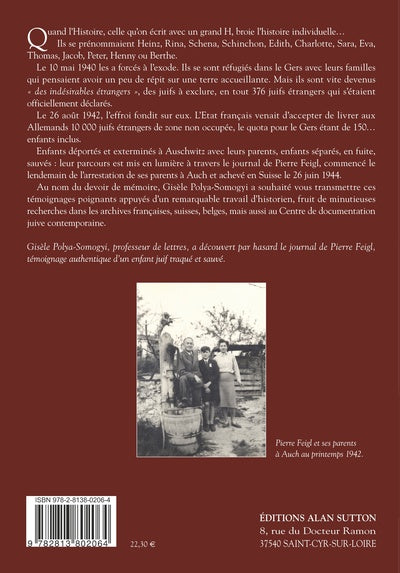 PrésentationQuand l'Histoire, celle qu'on écrit avec un grand H, broie l'histoire individuelle…Ils se prénommaient Heinz, Rina, Schena, Schinchon, Edith, Charlotte, Sara, Eva, Thomas, Jacob, Peter, Henny ou Berthe. Le 10 mai 1940 les a forcés à l'exode. Ils se sont réfugiés dans le Gers avec leurs familles qui pensaient avoir un peu de répit sur une terre accueillante. Mais ils sont vite devenus « des indésirables étrangers », des juifs à exclure, en tout 376 juifs étrangers qui s'étaient officiellement déclarés. Le 26 août 1942, l'effroi fondit sur eux. L'Etat français venait d'accepter de livrer aux Allemands 10 000 juifs étrangers de zone non occupée, le quota pour le Gers étant de 150…enfants inclus. Enfants déportés et exterminés à Auschwitz avec leurs parents, enfants séparés, en fuite, sauvés : leur parcours est mis en lumière à travers le journal de Pierre Feigl, commencé le lendemain de l'arrestation de ses parents à Auch et achevé en Suisse le 26 juin 1944. Au nom du devoir de mémoire, Gisèle Polya-Somogyi a souhaité vous transmettre ces témoignages poignants appuyés d'un remarquable travail d'historien, fruit de minutieuses recherches dans les archives françaises, suisses, belges, mais aussi au Centre de documentation juive contemporaine. Gisèle Polya-Somogyi, professeur de lettres, a découvert par hasard le journal de Pierre Feigl, témoignage authentique d'un enfant juif traqué et sauvé. Afficher moinsAfficher plus