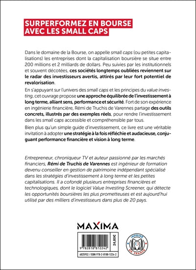 Sommaire1. Introduction auxsmall caps(petites capitalisations).Définition et importance. Avantages et défis spécifiques. Comparaison avec les grandes capitalisations. 2. Levalue investingappliqué auxsmall caps.Principes de base duvalue investing. Adaptation de ces principes auxsmall caps. 3. Méthodes de sélection des actions.Critères de sélection financière. Analyse qualitative et quantitative.Études de cas et exemples concrets. 4. Gestion des risques.Diversification et allocation d’actifs. Stratégies de réduction des risques spécifiques auxsmall caps. Suivi et ajustement des portefeuilles. 5.Études de cas et témoignages.Exemples de succès et d’échecs. Leçons tirées des expériences d’autres investisseurs.,PrésentationDans le domaine de la Bourse, on appellesmall caps(ou«  petites capitalisations ») les entreprises dont la capitalisation est comprise entre trois cents millions et deux milliards de dollars. Le plus souvent jeunes et en plein développement, ces entreprises représentent unsecteur d’investissement riche en opportunitéset voient aujourd’hui leur popularité croîtreà grande vitesse alors qu’ellesétaient relativement méconnues il y a encore quelques années. En se basant sur lessmall capset les principes duvalue investing, cet ouvrage présente uneapproche de l’investissementà long termeéquilibrée qui allie sens, performance et sécurité. Fort de son expérience en gestion de patrimoine, Rémi de Truchis de Varennes livre desoutils concrets illustrés par des exemples réels, dans l’optique de rendre l’investissement dans lessmall capsaccessible et compréhensible par tous. Bien plus qu'un simple guide d'investissement, cet ouvrage est une invitationà explorer uneapproche différente conjuguant performance financière et stratégieà la fois réfléchie et audacieuse. Afficher moinsAfficher plus