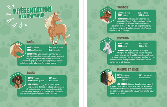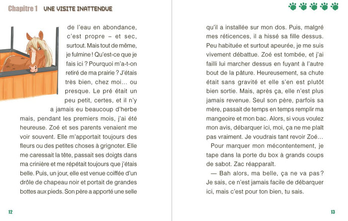 PrésentationUn roman passionnant sur les animaux, en collaboration avec la S.P.A. ! Gaïa est d'humeur maussade. Elle a quitté sa grande pâture pour atterrir dans un petit box auquel elle n'est pas habituée. Depuis le temps qu'elle attendait que quelqu'un lui rende visite... Mais son ennui est de courte durée. La jeune jument s'aperçoit bien vite que la vie au Grand Refuge est pleine de rebondissements. Lorsqu'elle rencontre ses nouveaux compagnons d'infortune, Gaïa retrouve sa joie de vivre. Et si elle trouvait une nouvelle famille pour l'accueillir au grand air ? Une collection inédite de romans illustrés, qui sensibilise les enfants à la protection des animaux, avec douceur et humour. Pour chaque livre acheté, un repas est offert aux animaux de la S.P.A. Dans la même collection :Boss(chat),Oslo(chien),Snow(lapin),Cosmo(chiot),Lou(cochon d'inde),Éclair(poulain) etPerle(chaton). Afficher moinsAfficher plus