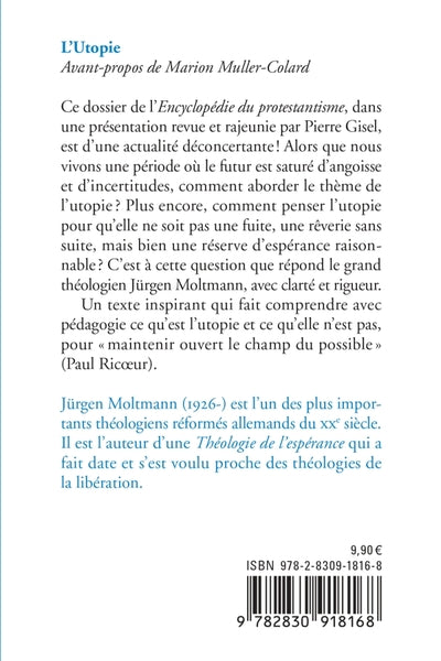 Dans cet ouvrage, Jürgen Moltmann, théologien protestant allemand de renom, explore le concept d'utopie à la lumière de la foi chrétienne. Il interroge la capacité de l'homme à imaginer et à construire un monde meilleur, en s'appuyant sur les enseignements de la Bible et la pensée théologique. Moltmann aborde des thèmes tels que la justice sociale, la paix et la solidarité, et invite le lecteur à réfléchir sur le rôle de l'utopie dans notre société contemporaine. Ce texte stimulant offre une perspective originale sur la relation entre espoir, foi et action. Afficher moinsAfficher plus