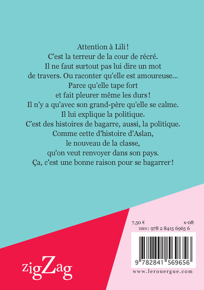 Dans ce roman jeunesse, Lili, une enfant bagarreuse et solitaire, voit sa vie bouleversée par l'arrivée d'Aslan, un camarade tchétchène. Elle devra faire face à de nouveaux combats, se ralliant à sa cause et organisant une manifestation contre l'expulsion de sa famille. Une histoire touchante sur l'amitié, la tolérance et l'engagement. Afficher moinsAfficher plus