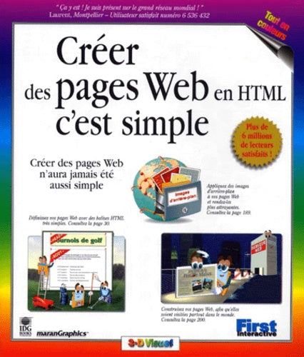 Le plus simple des livres pour créer des pages Web : grand format, tout en couleurs, pour débuter facilement, des dizaines d'actions décrites par étape avec des écrans commentés, avec l'aide de "Mister Micro", petit personnage sympathique qui vous épaulera pas à pas durant toute la durée de votre apprentissage. Une visite visuelle guidée de HTML décomposée en plusieurs étapes : Introduction à Internet et au Web – Introduction à la création de pages Web et au HTML – Premiers pas – Améliorer l'aspect du texte – Insérer des images – Améliorer l'aspect d'une image – Créer des liens avec d'autres pages Web – Sons et séquences vidéo dans une page Web – Placer un tableau – Créer un formulaire – Utilisation des feuilles de styles – Transférer des pages Web sur Internet et les faire connaître.Biographie de l'auteurChaque ouvrage MaranGraphics est le fruit de l'extraordinaire travail d'équipe d'une famille unique en son genre : la famille Maran de Toronto au Canada.