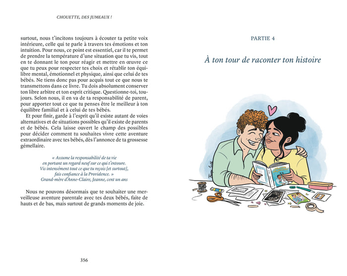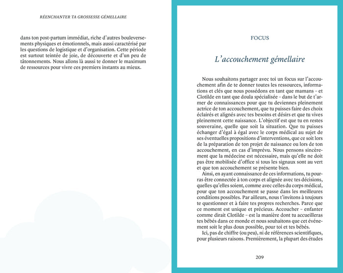 Présentation Lors de la premièreéchographie, l’annonce de jumeaux suscite souvent surprise et appréhension. Pourtant, accueillir deux enfants est une expérience unique et précieuse. Ce livre s’impose comme la bible pour vivre sa grossesse gémellaire en conscience. Enrichi de témoignageséclairants et authentiques ainsi que de conseils de mamans, il accompagnera les futurs parents de jumeauxà chaqueétape. Pensé pour offrir soutien et confiance, il guide pasà pas vers une parentalité gémellaireépanouie et pleinement vécue. Avant de refermer cet ouvrage, partagez-y votre propre histoire, de l’annonce jusqu’aux premiers mois de vie de vos bébés. Un guide indispensable pour vivre cette aventure exceptionnelle avec sérénité et joie. Afficher moinsAfficher plus