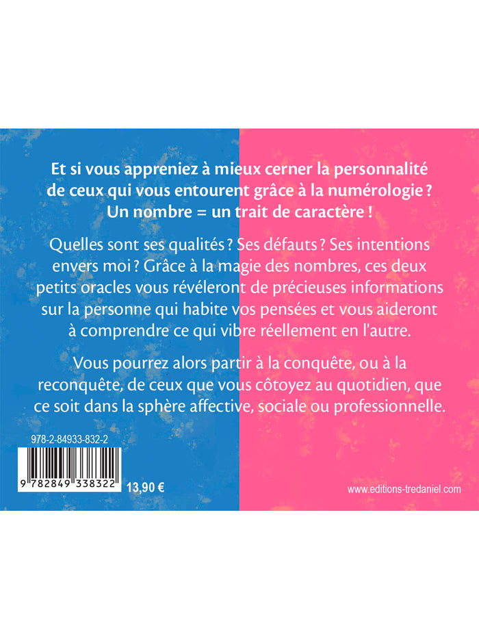 Ce livre propose un petit oracle basé sur la numérologie, destiné à répondre aux questions des couples. Alexandra Gabriel, médium et numérologue, partage son expertise à travers cet ouvrage. Les lecteurs pourront tirer des cartes et interpréter les messages pour mieux comprendre leur relation amoureuse. L'auteure explique également comment utiliser l'oracle et donne des conseils pour améliorer la communication et l'harmonie au sein du couple. Afficher moinsAfficher plus
