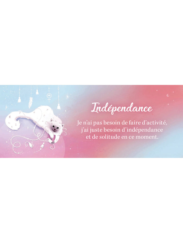 PrésentationCrée du lien et communique avec tous les animaux qui t'entourent Tu as toujours souhaité que ton animal ait la parole pour communiquer avec lui et comprendre ses messages ? Tu t'es toujours demandé pourquoi il est entré dans ta vie ? Grâce à ce petit Oracle, tu recevras des guidances qui te permettront d'enfin lui donner la parole. Réparties en 4 catégories, les 85 cartes te délivreront des messages pour t'aider à dialoguer avec ton compagnon, passer du temps avec lui selon ses besoins, comprendre sa mission spirituelle, ou encore mettre en place un quotidien serein, ensemble. Tu pourras ainsi resserrer les liens qui vous unissent et communiquer avec tous les animaux que tu rencontres. ,Note biographique Kévin Piranioest un lutin avec pour mission de vie de " transmettre un maximum de bonne humeur et de joie ". Il file une relation fusionnelle avec son enfant intérieur. Kévin est magnétiseur et donne des séances énergétiques. Il canalise les messages des guides à travers des guidances de lumière et transmet son savoir en animant des ateliers. Depuis quelques années, il a décidé de créer " L'atelier des lutins " sur les réseaux en partageant des guidances quotidiennes pour aider les autres à déployer leurs propres capacités et s'épanouir. Il est également auteur duGrand Grimoire des fées et des lutinset de plusieurs oracles, parus chez le même éditeur. www.atelierdeslutins.net ; Instagram : @atelier_des_lutins ; YouTube : Atelierdeslutins. Clémentine Rocheronest directrice artistique et illustratrice. Elle communique ses idées de manière originale pour mettre en lumière des projets qui lui tiennent à cœur. Elle est également l'illustratrice deL'Oracle de la voie divinatoirede Kévin Piranio, et deL'Oracle à haute vibrationécrit par Jenna Blossoms. Afficher moinsAfficher plus