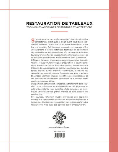 La restauration de tableaux est un ouvrage complet offrant une approche historique, technique et scientifique des procédés anciens de peinture. L'autrice, Isabelle Clément, permet au restaurateur d'identifier les causes des altérations et les solutions pour y remédier. Le livre aborde les différentes altérations possibles sur une œuvre, les caractéristiques des pigments et des colorants, ainsi que les techniques utilisées par les grands maîtres. Richement illustré, il s'adresse aux étudiants en restauration, aux historiens d'art, aux restaurateurs, aux peintres et aux amateurs d'art. Afficher moinsAfficher plus