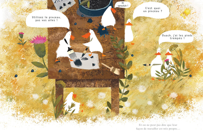 Note biographique Katerina Sad vit et travaille à Lviv, en Ukraine. ,PrésentationA travers cette histoire pleine d'humour, les lecteurs apprendront que chacun a en lui des ressources et qu'il y a toujours un moyen de sortir d'une situation difficile. Lorsqu'une ferme perd son propriétaire, les canards qui y vivent commencent à penser à leur avenir. Ils décident d'écrire une annonce, indiquant qu'ils recherchent un nouveau propriétaire, mais comme ils ne savent pas écrire, ils doivent apprendre à le faire. A travers cette histoire merveilleuse et pleine d'humour, les lecteurs apprendront que chacun a en lui des ressources et qu'il y a toujours un moyen de sortir d'une situation difficile. Afficher moinsAfficher plus