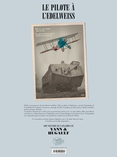 Fidèle à sa promesse de tuer Henri Castillac, Erik, le pilote à l'edelweiss, survole l'aérodrome de l'escadrille des Cigognes et lance un message de défi : il propose un duel aérien à Henri Castillac, pour la semaine suivante. Ce dernier, tétanisé par ce défi, part en permission à Paris avec ses amis pilotes. Mais pour Henri, cette fois-ci, contrairement à ses habitudes, pas de Folies Bergère ni de parties fines. Il abandonne ses camarades pour se rendre à un mystérieux rendez-vous au Pont de l'Alma. Il y rencontre son frère jumeau Alphonse, qui a été muté dans les chars, et lui fait une terrible proposition... Afficher moinsAfficher plus