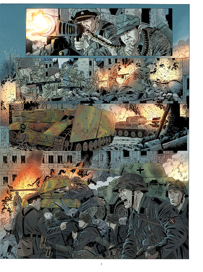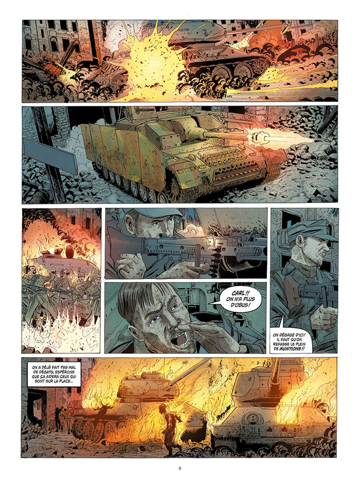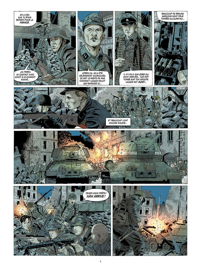 Dans ce deuxième tome, nous plongeons au cœur de la bataille finale pour Berlin en avril 1945. Les forces allemandes, y compris la Division Charlemagne composée de volontaires français, tentent de résister tant bien que mal face à l'avancée des troupes soviétiques et américaines. Les soldats, épuisés et conscients de la défaite imminente, cherchent à préserver leur honneur dans un dernier acte de bravoure. Cette bande dessinée historique retrace avec réalisme et sans concession les horreurs de la guerre et les choix moraux auxquels les personnages sont confrontés. Afficher moinsAfficher plus