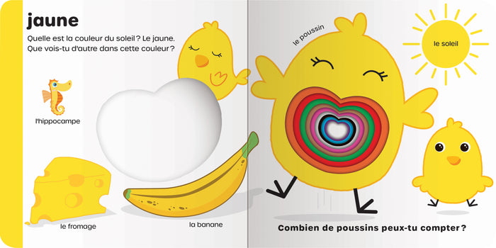 PrésentationUne façon amusante de découvrir les couleurs ! Ce livre aux illustrations vivement colorées et aux phrases simples encouragent les enfants à apprendre les couleurs. Le livre contient également des formes découpées pour plus de plaisir interactif; les trous rétrécissent au fil des pages, créant des couches intéressantes à explorer avec ses doigts. Afficher moinsAfficher plus