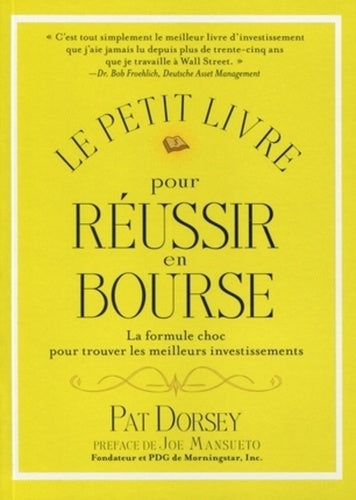4e de couverture Pour gagner de l'argent dans l'environnement boursier actuel, vous devez investir dans des entreprises qui performeront en dépit de la pression de la concurrence. Mais comment identifier précisément les entreprises qui sont excellentes aujourd'hui et le resteront probablement encore pendant de nombreuses années ? La réponse à cette question réside dans les avantages concurrentiels. Ils protègent les retourssur investissement élevés dont bénéficient les meilleures entreprises au monde. Si vous pouvez identifier les perles rares qui bénéficient d'avantages concurrentiels, et que vous pouvez acheter leurs titres à un prix raisonnable, vous commencerez à construire un portefeuille d'entreprises solides qui augmenteront vos chances de réussir en bourse. DansLe petit livre pour réussir en Bourse, l'auteur Pat Dorsey - directeur de la recherche boursière chez Morningstar - explicite cette méthode éprouvée et révèle comment vous pouvez l'appliquer efficacement à vos propres investissements. Afficher moinsAfficher plus