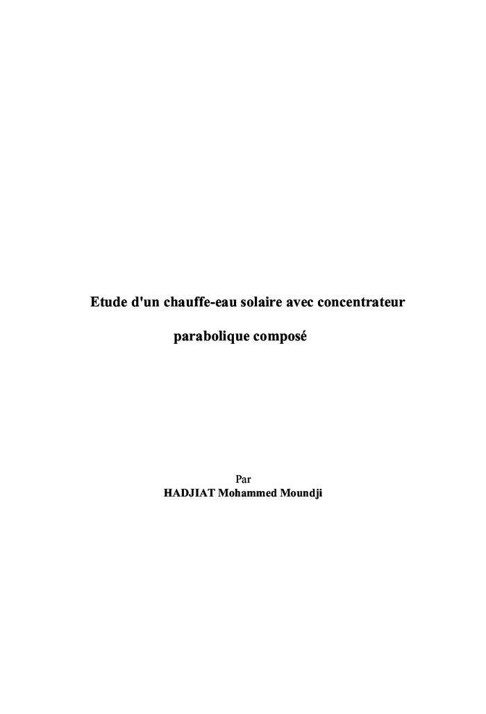 Etude d'un chauffe-eau solaire avec concentrateur parabolique composé