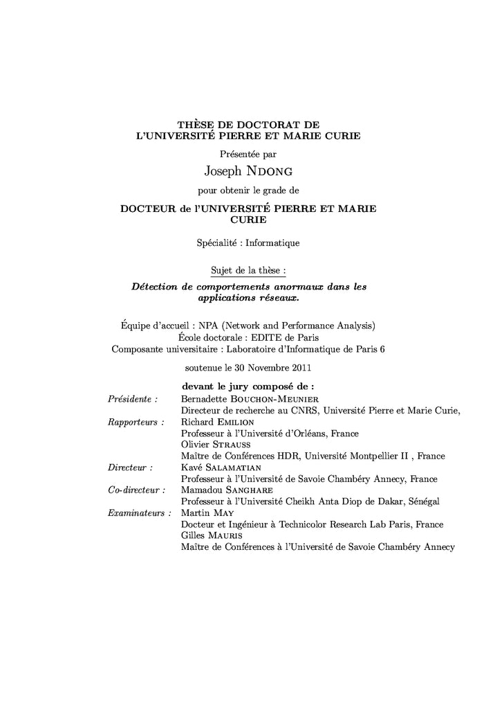 PrésentationCe livre présente des méthodologies robustes et fiable pour la mise en place d'outils de détection de comportements anormaux dans les réseaux de communication. Ces techniques sont essentiellement basées sur les théories mathématiques sur l'inférence statistique. De nouvelles méthodes font aussi appel à la théorie des possibilités. Les expériences sont basées sur des données réelles provenant de réseaux existant. Les techniques statistiques développées dans ce livre font allusion aux modèles de mélanges de gaussiennes et les modèles de Markov cachés. Nous étudions et evaluons particulièrement les performances de ces techniques en analysant le compromis entre le taux de détection et le pourcentage de fausses alarmes. Et ceci grâce à l'analyse de courbes ROC (Receiver Operating Characteristics). Nous montrons que la théorie des possibilités peut être associée aux techniques existantes sur l'inférence statistiques pour fournir une modélisation robuste du système étudié et fournir des résultats promettants. Afficher moinsAfficher plus