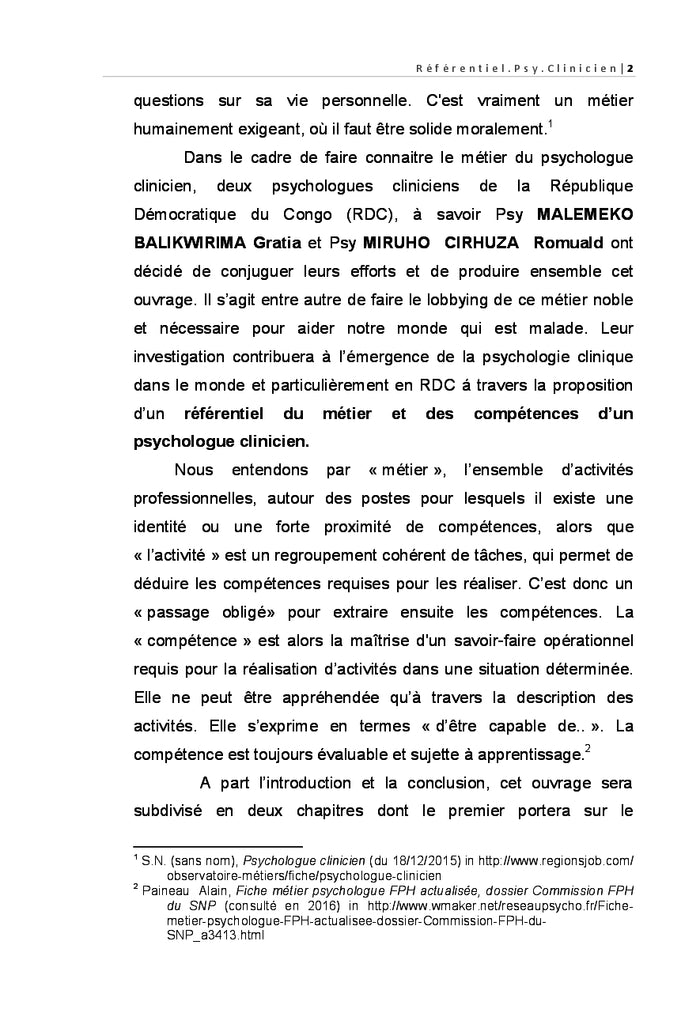 Référentiel du métier et des compétences d'un psychologue clinicien