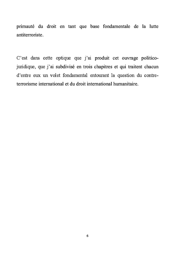 PrésentationLe terrorisme, forme extrême de l'action politique, est un préalable ou un substitut à la guerre. Il peut être interne à un pays et annoncer une guerre civile, ou se manifester au niveau international et représenter une stratégie de pression dirigée contre certains États. Aujourd'hui encore, le terrorisme reste difficile à définir, les États ne peuvent s'accorder sur une définition commune. L'Organisation des Nations Unies elle-même n'a pu en donner une interprétation claire et uniforme et préfère évaluer le terrorisme en fonction de domaines particuliers (piraterie maritime, sécurité aérienne, cyberterrorisme...). Par ailleurs, l'analyse de la problématique du respect des droits de l'homme dans la lutte antiterroriste est primordiale en vue de sa dimension universelle importante et de ses effets directs et indirects sur les victimes d'actes terroristes. C'est dans cette optique que j'ai produit ce livre politico-juridique, que j'ai subdivisé en trois chapitres traitant chacun un volet fondamental entourant la question du contre-terrorisme international et du droit international humanitaire. Afficher moinsAfficher plus