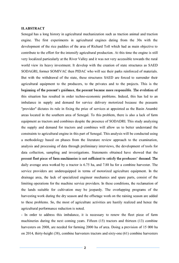 Mise au point de modèle Mathématique d´estimation du parc motorisé: Intensification de la riziculture par la motorisation agricole ( tracteurs et moissonneuses batteuses) au Sud Sénégal