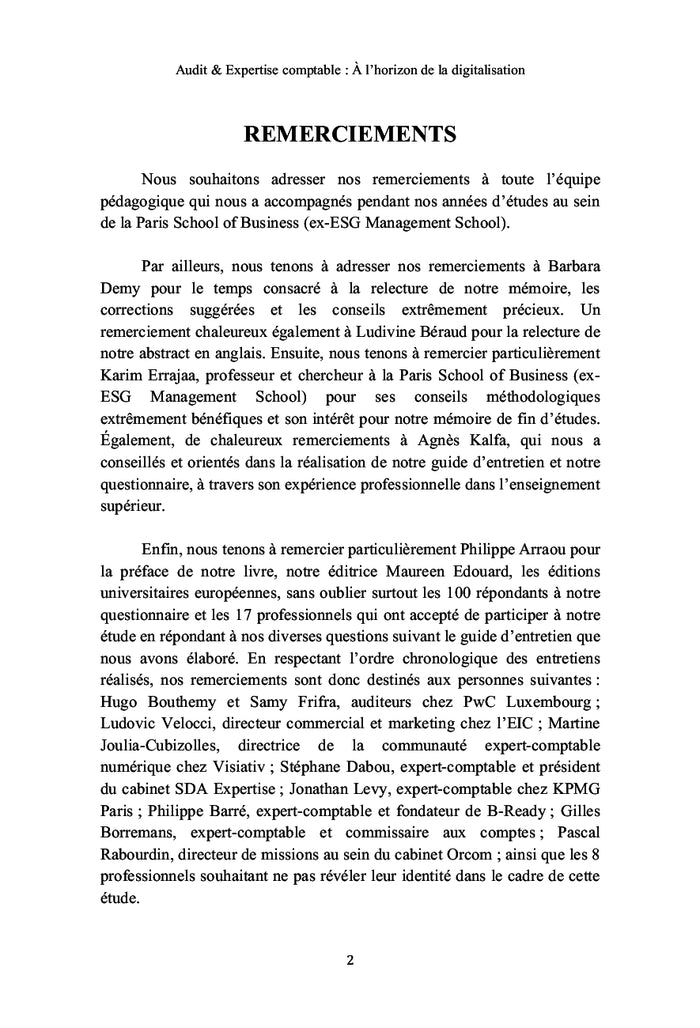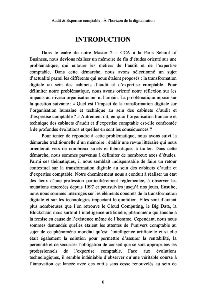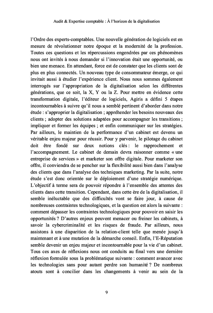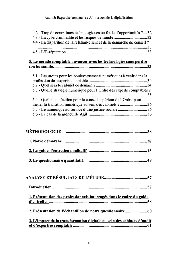 La transformation digitale bouscule les métiers de l'audit et de l'expertise comptable. Cette étude analyse l'impact de cette révolution sur les organisations humaines et techniques des cabinets. Elle propose un retour contextuel, examine les technologies en jeu et met en lumière les défis rencontrés par ces professions. En s'appuyant sur les témoignages de professionnels et des données chiffrées, elle interroge la manière d'avancer avec les technologies tout en préservant l'humanité de ces métiers. Afficher moinsAfficher plus